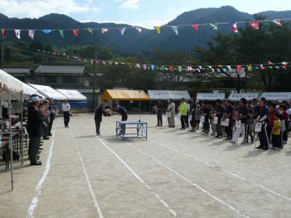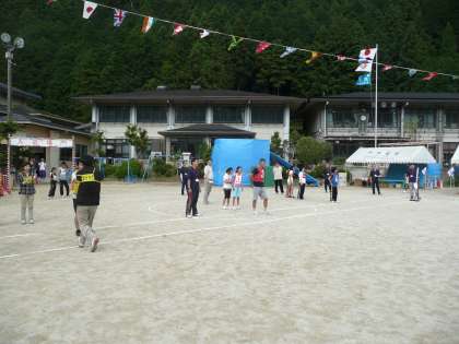 午前9時半から本校運動場で区民大運動会が行われています。京都大原学院の児童生徒も多数参加しています。
