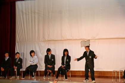 9時より,図書委員会による『プロローグ』が行われ,文化祭テーマ『Yes we can 輝く夢 大原story』の紹介の寸劇を披露してくれました。