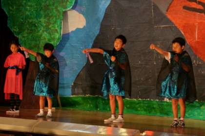3年生4年生の劇『小さな小さな魔法使いたちの大きな大きな冒険の話』です。