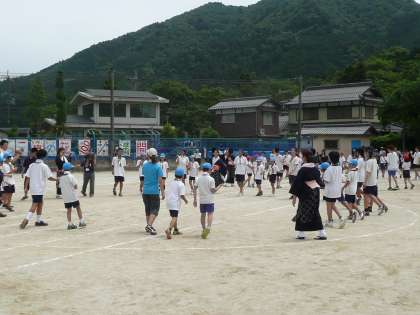 大原に伝統的に伝わる八朔踊りです。児童生徒に混じって,教職員や保護者,地域も皆さんもたくさん踊りました。