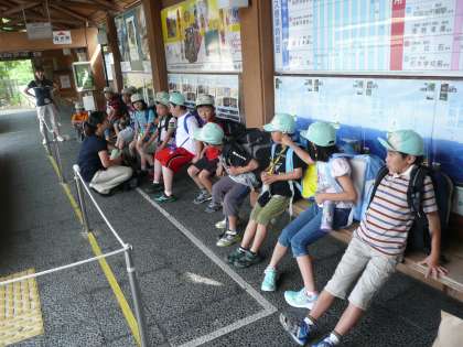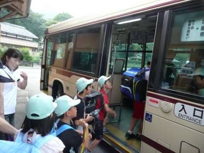 大原バス停7時45分のバスに乗車し,みさきの家に向けて出発しました。地下鉄,近鉄,船を乗り継いで午後1時頃にみさきの家に到着予定です。