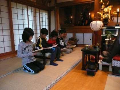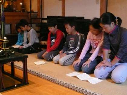 みんな元気に2日目の朝を迎えました。浄蓮華院の朝は,止観指導・般若心経で始まります。みんなで正座をして姿勢よく,しばらく瞑想にふけります。みんなで元気よく般若心経を唱えました。