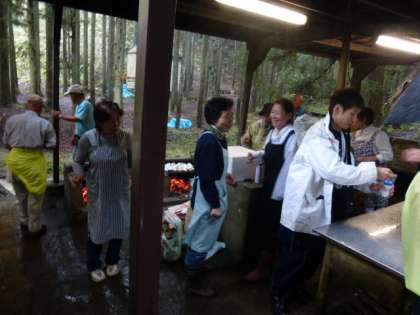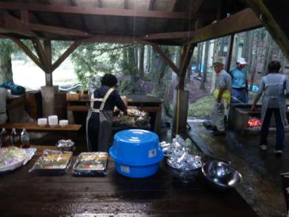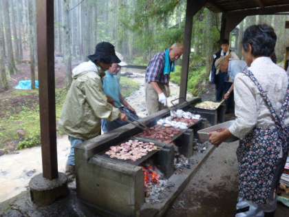 写真は,百井キャンプ場でバーベキューのお世話をして下さっている地域のみなさんの様子です。準備段階から今日までいろいろとお世話をいただき,本当にありがとうございました。