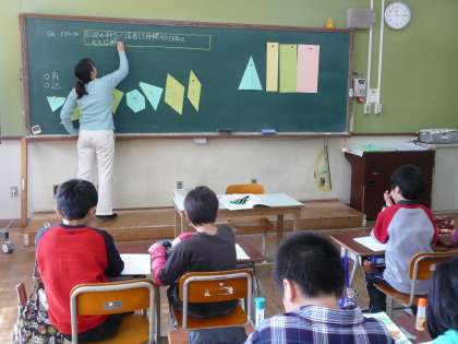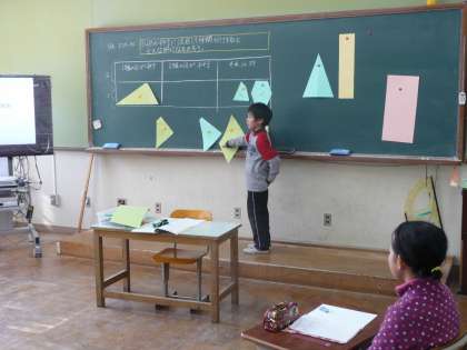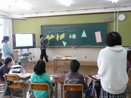 4年生では,垂直と平行について学習しました。今日は,辺の平行に注目して仲間わけをしました。