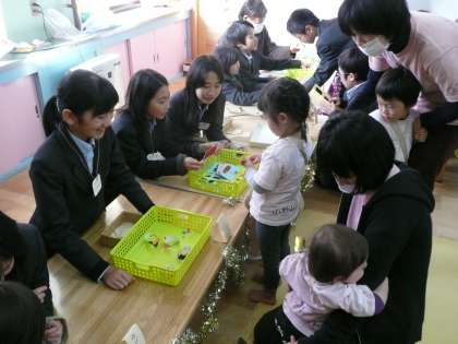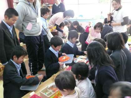 5,6年生もわらんべの子どもたちもわらんべ通貨をもって,前半後半に分かれお店屋さんとお客さんを経験しました。