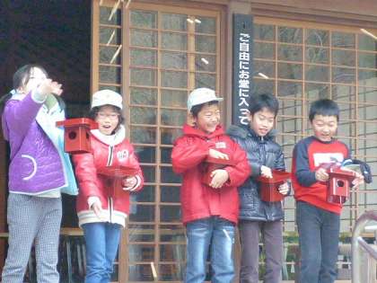 グループごとに分かれて豆まきをしました。