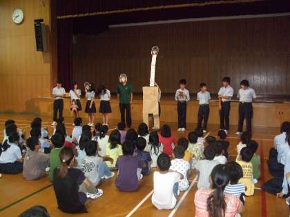ふれあいタイムでは、7年生が「からだと心の成長」について話をしてくれました。現在、7年生は第2成長期に入っていますが、このまま身長が伸び続けたら、10年後何cmになるかを示してくれ、みんな興味をもって話を聞いていました。男の子と女の子のちがい、思春期の心身の変化について、今後も考えていきましょう。
