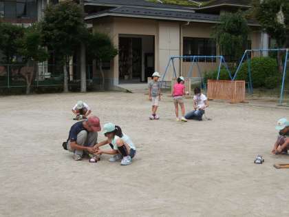4年生がグラウンドでソーラーカーを走らせました!
