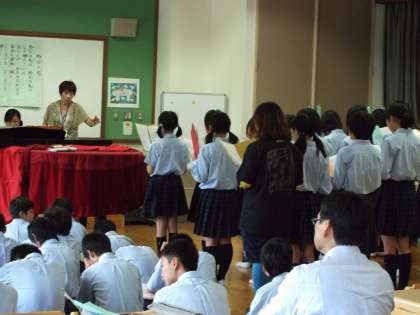 その文化祭で行われる,全校合唱の練習に取り組んでいます。平成26年9月18日(木)は,中・後期の児童生徒が,多目的室に集まって合唱練習を行いました。男子パート・女子パートに分かれて練習した後に,全体練習をしました。練習をする度に熱を帯びてきました。