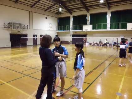 昨日に引き続いての男女ソフトテニス。女子は団体戦、1回戦2−1、2回戦2−0と順調に勝ち進みましたが、次の相手が強敵の光華中学。残念ながら負けましたが夏の大会での雪辱を期待します。男子個人ではAくんBくんペアが公式戦初勝利とうれしい報告がありました。応援の保護者の方々、お忙しい中、声援ありがとうございました。(写真は女子バドミントンです。)
