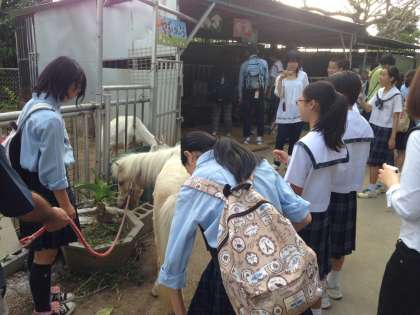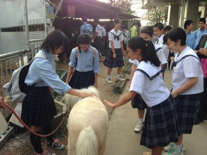 石嶺中学で飼っているポニーやヤギとも交流しました。