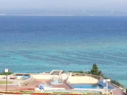 美ら海水族館の中です。ジンベエザメが悠々と泳いでいます。