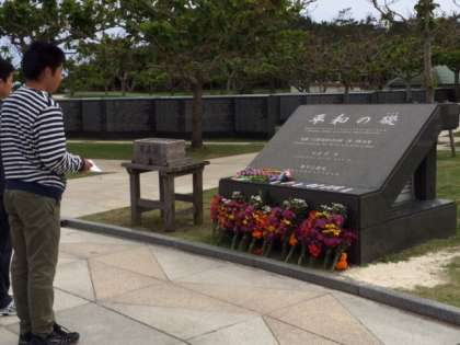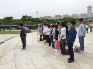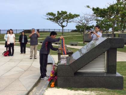 平和祈念公園にやって来ました。みんなで作った千羽鶴を捧げ、学院生みんなで祈りました。