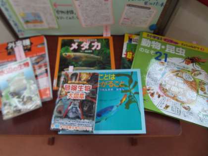 6月17日(水)、学院生が最も行き来する「にじのかけ橋」に図書コーナーが設置されました。新聞記事から百科事典「ポプラディア」を使って調べる方法とか、新刊図書の紹介がきれいに飾られていました。