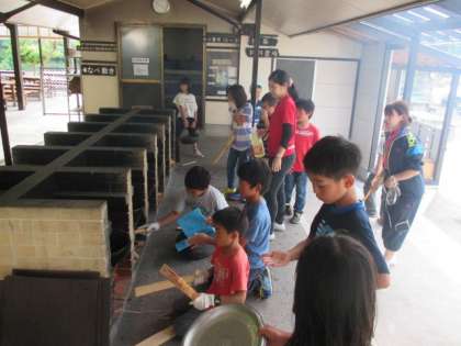野外炊事の時間には、みんなで力を合わせてカレーライスを作りました。野菜を切ったり、火をおこしたり、火加減を考えながら鍋で煮たりと、大変でしたが、時間通りに完成しました。
