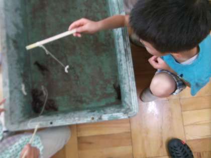 7月9日(木)、1年生が生活の授業で「ザリガニ釣り」に挑戦しました。担任の先生が大量のザリガニを用意してくれ、1年生のみんなは、スルメをえさにザリガニ釣りを楽しんでいました。