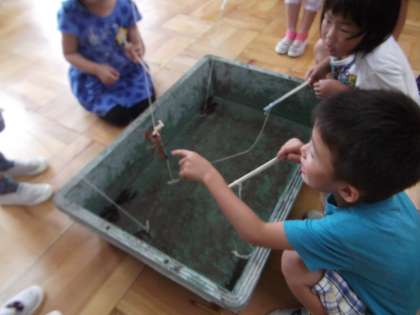 7月9日(木)、1年生が「ザリガニ釣り」に挑戦しました。