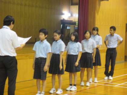 良い歯の表彰 6年が3人、9年が3人と全学院生の前で表彰式が行われました。