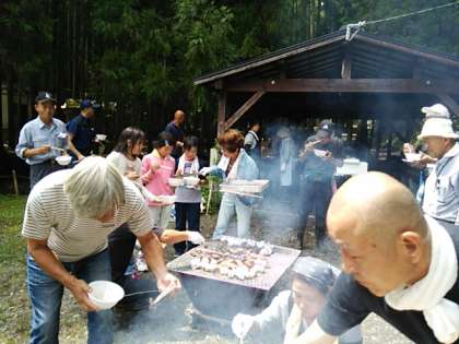 百井青少年村に到着し、お昼をいただきました。地域の方が準備して下さったバーベキューや焼きそばです。お肉は鹿肉や猪肉など、普段食べられない食材も用意してくださり、5年生のみんなは美味しくお腹いっぱいになっていました。