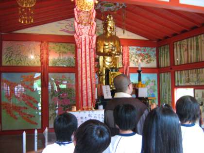 三千院にある仏像のお話を聞き,4カ所で,般若心経を唱えました。みんな心改まる思いがしたようでした。