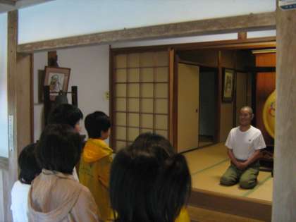 7月5日(月)〜9日(金)に,5年生が4泊5日の三千院長期宿泊学習を行いました。5日目9日(金),長い間お世話になった浄蓮華院出発です。3泊もの間,いろいろなお世話をしていただいた浄蓮華院の方にお礼をいって大原工房へ向かいました。