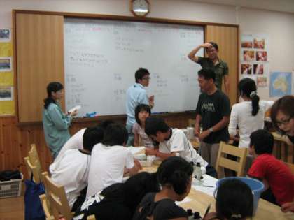 7月26日(月)に,大原里づくりトライアングルの主催で,第6回高野川の水生生物調査を行いました。親水公園での生物調査の後,ふるさとルームでどんな生物がいたのかを調べました。(同定しました)