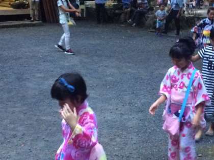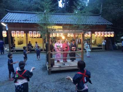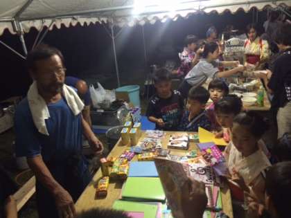 9月3日(土)「江文神社」の「八朔祭」がありました。夕方6時からは、京都大原学院の学院生が前座として道念踊りを踊りました。踊ったあと、子どもたちには文房具やお菓子のプレゼントが用意されていました。