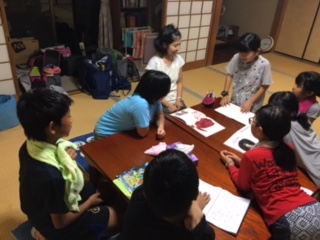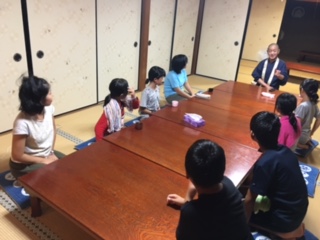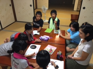 子どもたちは入浴を済ませ、御住職のお話を聞きました。そのあと、秋の文化祭に向けての話し合いを始めました。