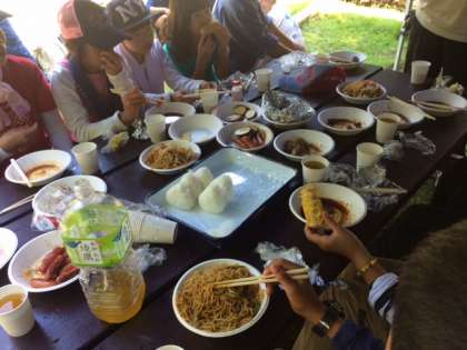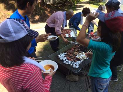 地域の方がバーベキューの準備をしてくださっていました。牛肉,鹿肉,トウモロコシ,