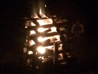 夜のレクリエーションはキャンプファイアーです。地域の方がたくさんのマキを用意してくださり,実に見事なキャンプファイアーが完成しました。夕刻より,学校から多くの教員が応援に駆けつけ,とても楽しいゲームが繰り広げられました。