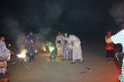 第3部では,グラウンドで,花火大会をしました。最初打ち上げ花火を鑑賞した後,みんなで花火をしました。