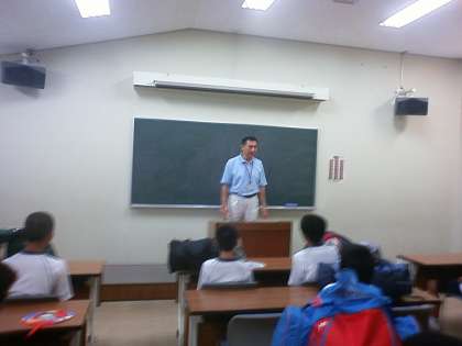 8月25日(水) 7・8年生 若狭青少年自然の家宿泊学習1日目 自然の家に到着しました。すぐに入所式を行いました。