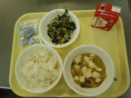 ナムルは韓国・朝鮮の家庭料理の一つです。もやしなどの野菜をゆでて,調味料とゴマ油であえたものです。今日の給食ではほうれん草ともやしをゆでて,ごま油で炒めて,砂糖・(淡)醤油・米酢で味付けしています。