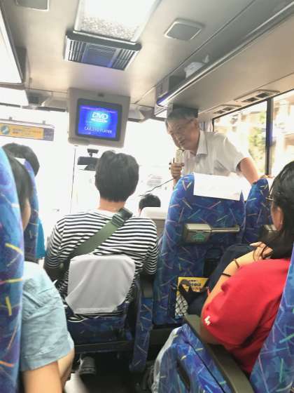 バスの中で解団式をおこなっています。今回の修学旅行で学んだことを、家の人に、京都大原学院のみんなに、ぜひ、たくさん話してあげて下さい。そして今日は疲れているでしょうから、ゆっくりと休んで下さい。9年生お疲れ様でした。