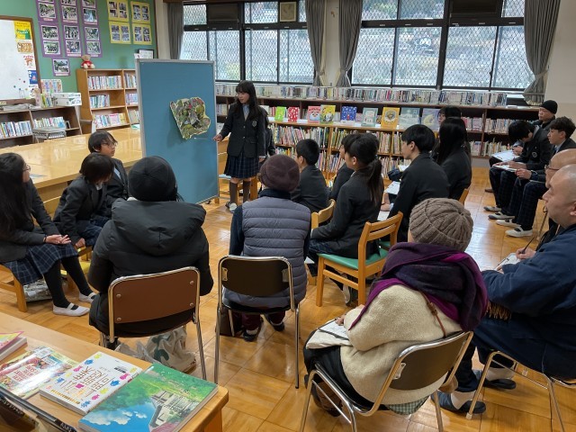 学習でお世話になった三千院の方々,地域の方々,保護者の皆様がたくさんお越しになり,みんな緊張した様子でしたが,堂々とした態度で立派に発表することができました。地域の方からは「指差しや視線にまで気を配った,よい発表でした」との声をいただきました。