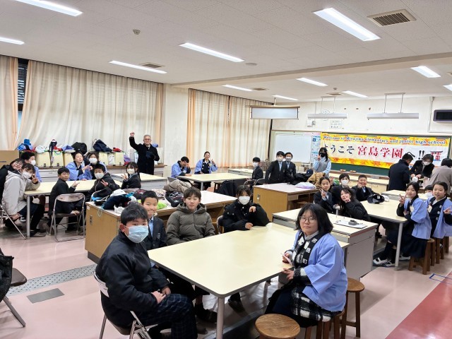 交流校の宮島学園に到着しました。