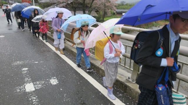 昨日入学式を迎えた1年生が初めての集団登校で登校しました。