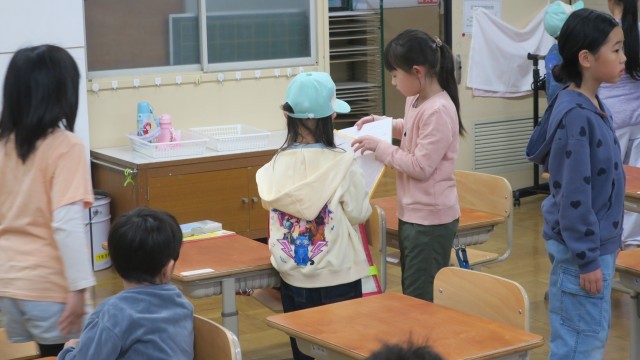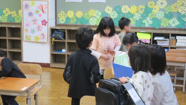 教室に入ると、2年生を中心に登校後のお手伝いをしてくれました。