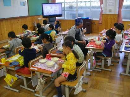今年度,2回目の給食。みんなモリモリおかわりをして食べていました。完食です。エプロンのお片付けもバッチりでした。
