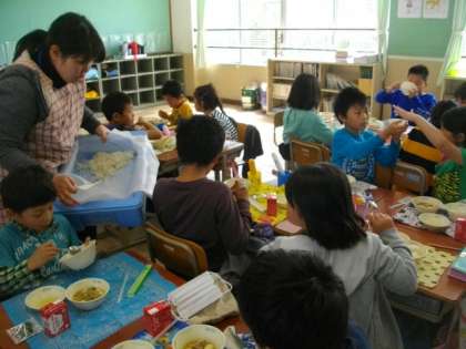 新しい友達とお話しを楽しみながら,いっぱい食べました。心も体も元気いっぱいです。