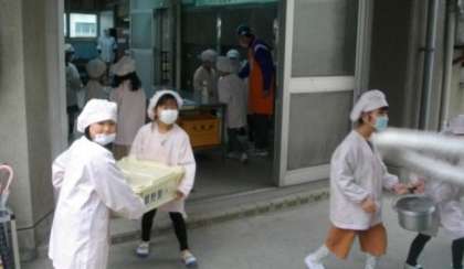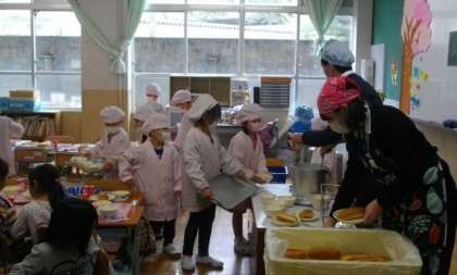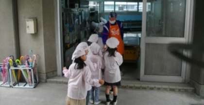 給食の準備が始まりました。