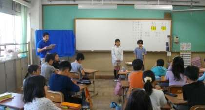 今日の朝の帯の時間には,新出漢字の練習をしたあと,朝の会を進めています。
