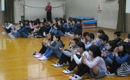 3組は,元気いっぱいに「エビカニクス」のダンスを披露してくれました。会場全体で手拍子が鳴り響いていました。