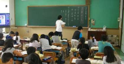 4年生は,国語で辞典の引き方を学習しています。3年生は外で体育をしています。