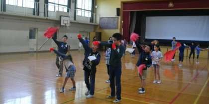 振り付けや声だしのタイミングを,少しずつ話し合って決めていきます。