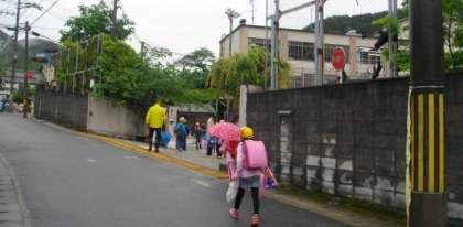 子どもたちが登校してきました。今日一日は雨が降るようです。明日,3年生は,遠足で大文字山に登る予定です。京都市内が一望できるといいですね。
