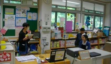中間休みに外で遊んでいる子どもがたくさんいますが,図書室で読書に親しむ子どももいます。図書委員会で今日の担当のお友達は,貸出業務と本の整理をしていました。ありがとう。