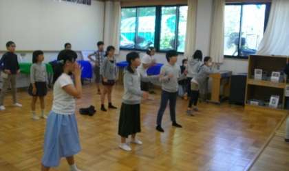 音楽室では,全校ダンスの練習を進めています。「右からはじめるんだったら,前に並ぶ人は左からはじめるほうがいいよね。」子どもたちが自分で考えて進めています。