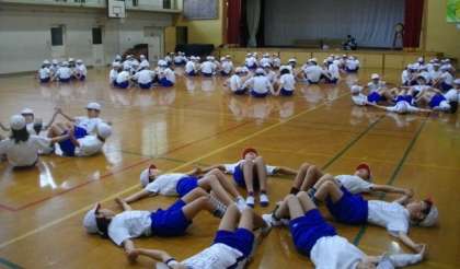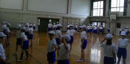 高学年の集団演技も一つずつ技を作り上げていきます。