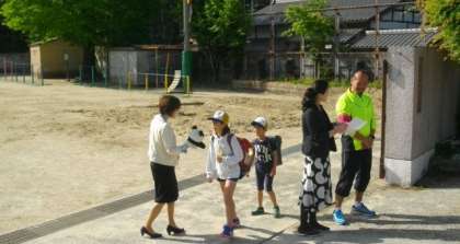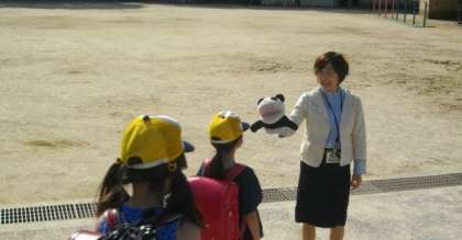 今日は,パンダの「いちはら ぱんた」さんが,校門前で子どもたちを迎えてくれました。